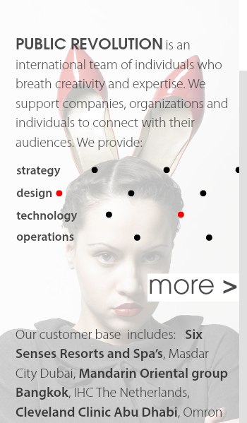 PUBLIC REVOLUTION is an international team of individuals who breath creativity and expertise. We support companies, organizations and individuals to connect with their audiences. We provide: